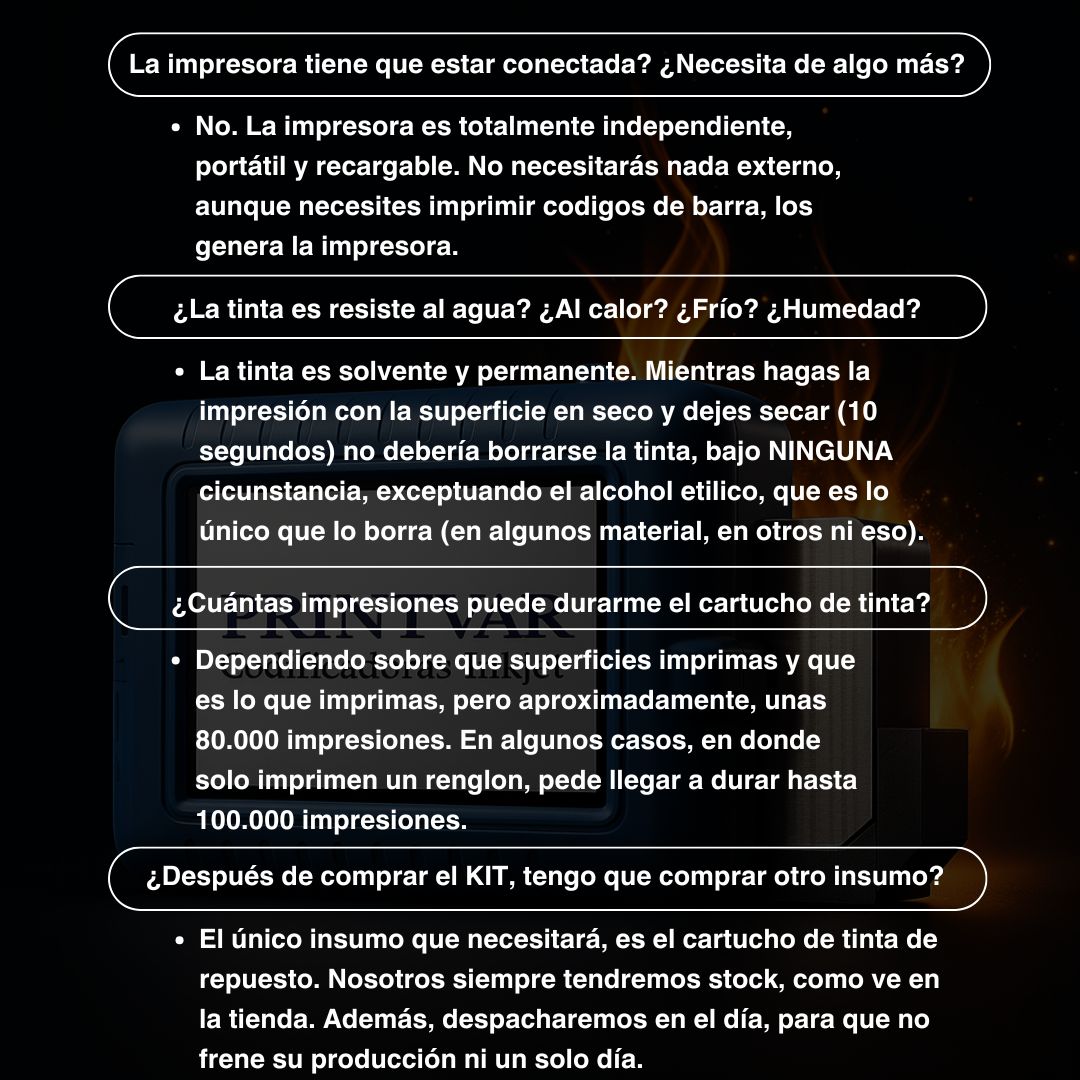 📦 SI, la tinta adhiere en cualquier superficie. Seca en menos de 10 segundos y no se borra.🔥
